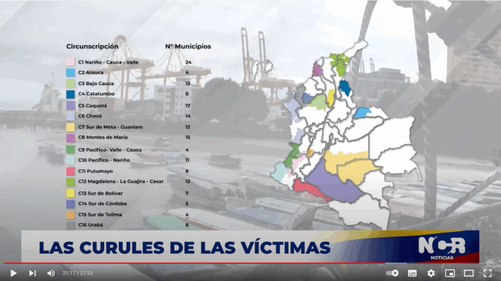 En agosto del 2021, después de pasar por el Congreso Nacional, el Gobierno promulgo el Acto Legislativo 02 del 2021 , para garantizar 16 curules de paz que representaran a las víctimas que viven en territorios afectados por el conflicto armado. Los 16 representantes que ocuparán las curules serán elegidos por los colombianos el próximo 13 de marzo. Según el representante del Valle del Cauca por el partido Conservador, José Gustavo Padilla, con estas curules de paz las victimas tendrán por fin una legal representación en el congreso de la república y serán la voz de todas las víctimas del conflicto armado colombiano. Las circunscripciones corresponden a áreas específicas determinadas en el acuerdo de paz por tener escasa representación política y por ser sectores afectados por la violencia, estas son: Norte del Cauca, Arauca, Nordeste Antioqueño, Catatumbo, Pie de Monte Caqueteño, Chocó, Meta y Guaviare, Montes de María, Pacifico Medio, Frontera Nariñense, Putumayo, Sierra Nevada del Perijá, Sur del Bolívar, Sur de Córdoba, Sur del Tolima, Urabá. Las listas tendrán voto preferente y estarán integradas por dos candidatos que hayan sido víctimas y en cada circunscripción debe haber un hombre y una mujer. las 16 curules estarán vigentes por 2 periodos electorales. Fuente: Oficina de Prensa Cámara de Representantes Comunicado de Prensa de: Tatiana Ahumada Bolívar