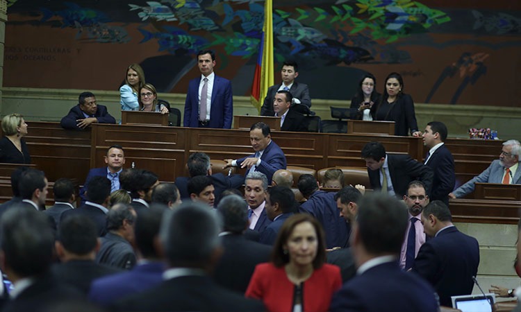 Fuente: Oficina de Información y Prensa Cámara de Representantes. Tras el rechazo por parte de diferentes bancadas del informe de conciliación del acto legislativo que crea 16 Circunscripciones Especiales de Paz, el Gobierno, a través el Ministro de Interior, Guillermo Rivera, solicitó a la plenaria de la Cámara aplazar la votación del proyecto mientras se aclaran las inquietudes de los congresistas. La propuesta del Ministro fue acogida por 88 de los representantes que en su mayoría mostraron disgusto por que en los textos de la conciliación del proyecto de Circunscripciones Especiales de Paz no fueron incluidas las iniciativas aprobadas en Cámara. El representante conservador Óscar Bravo sostuvo que a pesar que en el texto aprobado por la Cámara se definió que solo las víctimas del conflicto podrían aspirar a las Circunscripciones, el texto de Senado abre la posibilidad para que miembros de las Farc se presenten a estos cargos. “Votamos que las curules fueran para las víctimas del conflicto armado, de no ser así se abre gran posibilidad que las Farc accedan a ellas”, expresó. Por su parte, el representante Abraham Jiménez de Cambio Radical, indicó que aunque la Corporación aprobó que no se podía votar en las zonas urbanas y en Senado se estableció que las poblaciones menores a 55 mil habitantes sí lo podían hacer, el texto conciliado señala que municipios con menos de 10 mil habitantes en cascos urbanos sí pueden ejercer el sufragio, “eso no queda en el texto de Cámara y Senado, eso es ilegal”. A su turno, el representante liberal John Jairo Roldán, expresó que “esta conciliación se sale de todo esquema conciliador: en los puntos más importantes de la Cámara la vuelven trizas, se le adicionan términos que es un tema penal. Ya hay antecedentes con la citada ley de la justicia”. “En estas condiciones ningún representante a la Cámara están en condición de votar esta conciliación, debe ser retirada y traída en términos de Ley y que se tenga en cuenta lo que se ha definido en la Cámara, no lo que quiere le Senado”, anotó. A raíz de esta situación, la representante Angélica Lozano pidió a la Presidencia de la Cámara nombrar conciliadores plurales para la Justicia Especial para la Paz. Por su parte, el ministro del Interior, Guillermo Rivera, pese a que apoyó el aplazamiento, desestimó las preocupaciones frente a los cambios del contenido aprobado. “Se está generando un temor infundado en algunos aspectos, la Corte tiene providencias que permiten combinar o modificar textos. Solicito que se place esta discusión, que nos dé un tiempo para hablar con las bancadas y absolver las inquietudes”, señaló.