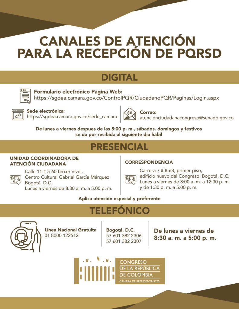Formulario: https://sgdea.camara.gov.co/ControlPQR/CiudadanoPQR/Paginas/Login.aspx