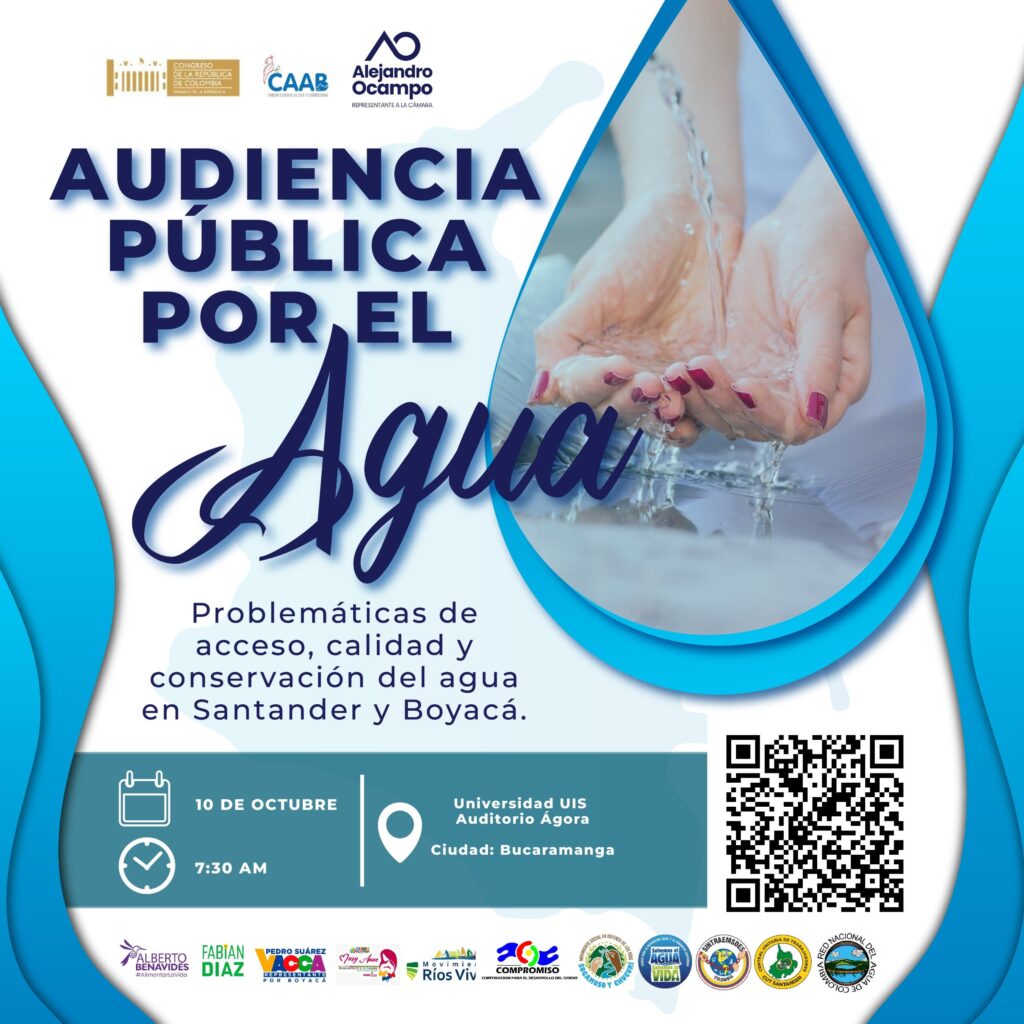 En esta audiencia se analizarán problemáticas territoriales y comunitarias relacionadas con el agua y se plantearán posibles soluciones que contribuyan a la garantía del derecho fundamental al agua, como factor determinante del desarrollo integral y regional. Bogotá, 8 de octubre de 2024 (Prensa Cámara) . Uno de los propósitos de la Comisión Accidental de Agua y Biodiversidad del Congreso de la República, liderada en Cámara de Representantes por el congresista Alejandro Ocampo, es continuar con la realización de audiencias públicas regionales para abordar las problemáticas y soluciones relacionadas con el acceso, la calidad, y la conservación del agua en Colombia. El principal objetivo de estas audiencias es reunir a actores clave de la sociedad civil, la institucionalidad y la academia para visibilizar y analizar las problemáticas territoriales y comunitarias relacionadas con el agua, así como para proponer soluciones que contribuyan a la garantía del derecho fundamental al agua, tal como lo establece el Plan Nacional de Desarrollo. La comisión busca, a través de estos espacios de diálogo, avanzar en la ordenación del territorio en torno al agua y mejorar la calidad de vida de los colombianos y colombianas. Durante las audiencias, se espera la participación de funcionarios de diversos ministerios y direcciones relacionadas con agua potable y saneamiento básico, incluyendo el Ministerio de Vivienda, el Ministerio de Ambiente, el Departamento Nacional de Planeación, gobernaciones, alcaldías, Corporaciones Autónomas Regionales (CAR), entre otras entidades. Estas instituciones serán llamadas a escuchar y atender los requerimientos de las comunidades organizadas y no organizadas que se darán cita en estos encuentros. Además, la Comisión ha extendido la invitación a organizaciones sociales, defensores del medio ambiente, campesinos, juntas de acción comunal, administradores de acueductos comunitarios, estudiantes, docentes universitarios, entre otros actores de la sociedad civil, para que participen activamente en estas audiencias. Se espera que estas voces contribuyan de manera significativa al debate y la búsqueda de soluciones. El Representante Alejandro Ocampo ha reiterado el compromiso de la Comisión del Agua y la Biodiversidad del Congreso de la República de seguir trabajando en la protección del recurso hídrico y de ser veedores de los compromisos asumidos por las entidades del Ejecutivo en todos sus niveles. Fecha: Jueves 10 de octubre de 2024 Hora: desde las 7:30 a.m. Lugar: Auditorio Ágora de la Universidad Industrial de Santander – UIS Inscripción AQUÍ Fuente: Oficina de Información y Prensa Cámara de Representantes con información prensa representante Alejandro Ocampo