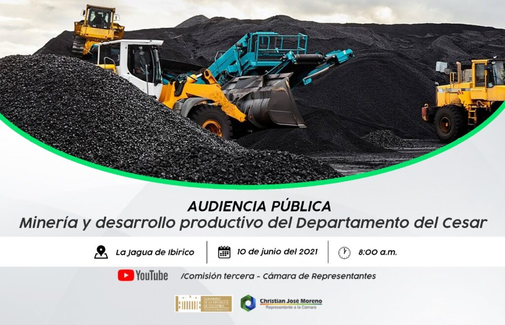 Una audiencia pública sobre ‘Minería y desarrollo productivo del Departamento del Cesar’ se realizará el próximo jueves 10 de junio del presente, a las 8:00 am, en el auditorio de la Alcaldía del Municipio de la Jagua de Ibirico. Este evento es una acción liderada por el Representante a la Cámara Christian José Moreno Villamizar y con el respaldo institucional del alcalde Ovelio Jiménez Machado. El propósito de esta audiencia pública es escuchar a las comunidades y autoridades del corredor minero del Departamento del Cesar frente a las renuncias de los títulos mineros y el incumplimiento de los planes de compensación y de más obligaciones en el marco de los contratos de concesión, en los municipios que hacen parte del corredor minero. Al evento han confirmado la asistencia la Viceministra de Minas, Sandra Sandoval, el coordinador de regiones de la dirección de productividad y competitividad del Ministerio de Comercio Andrés Sandoval. Igualmente el Subdirector de mecanismos de participación de la Agencia Nacional de Licencias Ambientales ANLA, Paulo Pérez. Participaran también el Presidente de la Agencia Nacional de Minería ANM, Juan Miguel Durán Prieto, el Presidente de la Asociación Colombiana de Minería Juan Camilo Nariño, un delegado del Ministerio de Agricultura y la Jefa de la Oficina Jurídica de Corpocesar, Liliana Cadena. Han confirmado también su asistencia a la audiencia pública los alcalde de los municipios de Codazzi, El Paso, Chiriguaná y un designado por el municipio de Becerril. Las empresas mineras Drummond, Prodeco y CNR también harán intervención en este espacio. El Representante Moreno Villamizar igualmente informó de la presencia de los demás parlamentarios del Cesar. El Presidente de la Asamblea Departamental Jorge Barros y la diputada Petra Romero. Especial interés han despertado la participación de las delegaciones de las poblaciones el Hatillo, Boquerón, La Victoria y Plan Bonito. Al final del evento se realizará una relatoría donde se consignarán, las conclusiones y plan de acción y seguimiento a esta audiencia pública sobre el sector minero y el desarrollo productivo del Departamento del Cesar. Fuente: Comunicaciones Representante Christian José Moreno Villamizar AQUILES HERNANDEZ SAURITH Contacto 3215018872