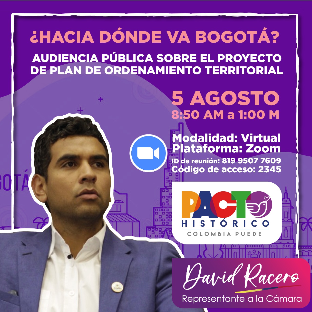 David Racero, Representante a la Cámara por Bogotá de la bancada del Pacto Histórico citó el próximo jueves, 5 de agosto, a autoridades distritales, expertos y comunidad en general, a