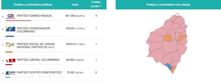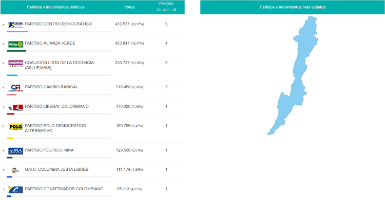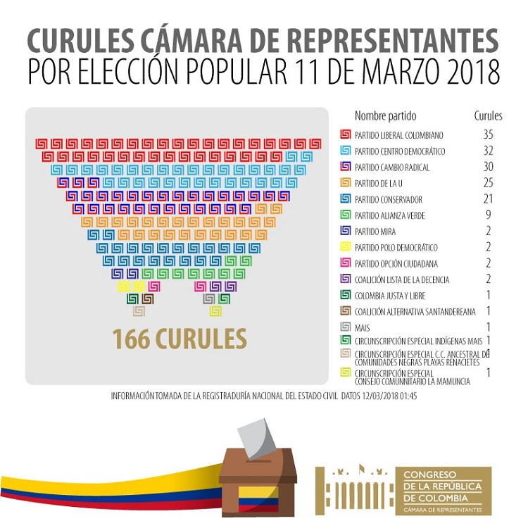 Fuente: Con información de Registraduría Nacional. Guainía, Guaviare, Putumayo y San Andrés cuentan con dos curules en la Cámara de Representantes para el periodo legislativo 2018-2022. De los ocho representantes