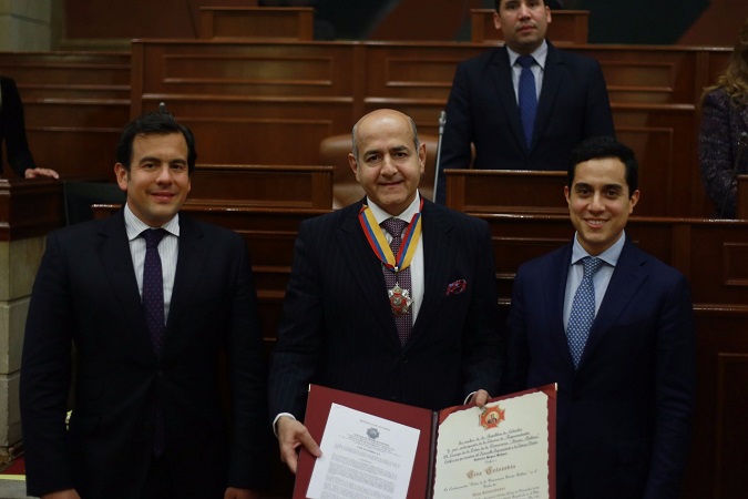 Fuente: Oficina de Información y Prensa Cámara de Representantes. El representante Federico Hoyos del Centro Democrático, entregó la Condecoración Orden de la Democracia Simón Bolívar en el Grado Cruz Comendador