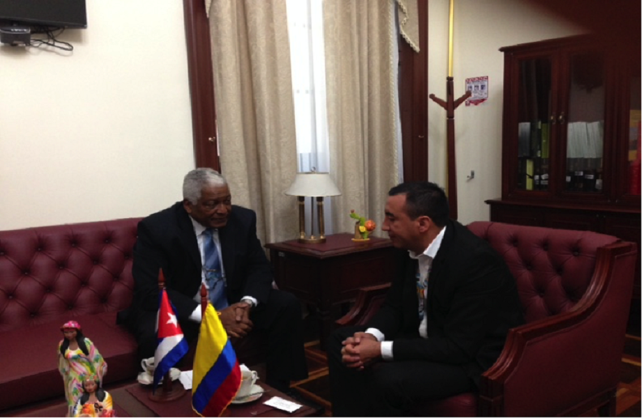 El congresista nariñense German Carlosama, actualmente segundo Vicepresidente de la Cámara de Representantes, y el Embajador de Cuba en Colombia, José Luis Ponce Caraballo, se reunieron este martes en el