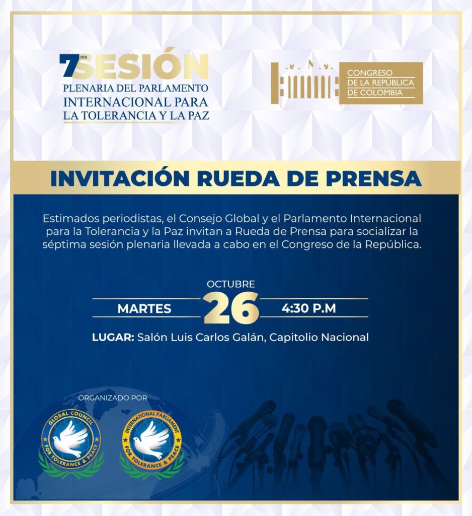Colombia, sede de encuentro del Parlamento Internacional para la Tolerancia y la Paz