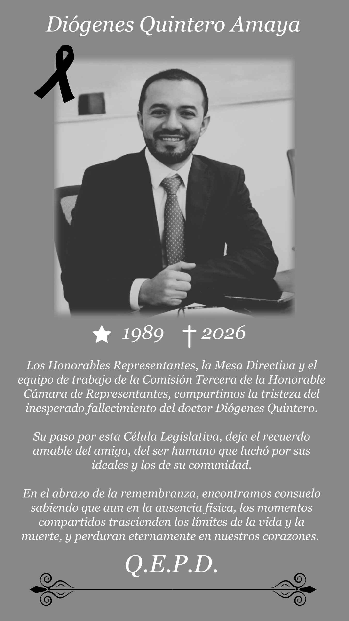 Ubicación: CRA 7 N 8-68 Edificio nuevo del Congreso Piso 5, Bogotá, Colombia  Teléfono: (+57) 1 3904050 EXT 4080 / Oficina: 512-513 Correo: comision.tercera@camara.gov.co