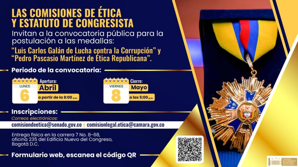 Convocatoria Ley 668 de 2001, postulación de medallas "Luis Carlos Galán de Lucha contra la Corrupción" y "Pedro Pascacio Martínez de Ética Republicana".