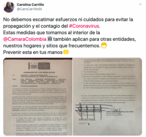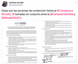 Estas son las acciones de contención frente al #Coronavirus Covid-19 tomadas en conjunto entre la @CamaraColombia y @SenadoGovCo 12/03/2020 Leer más »