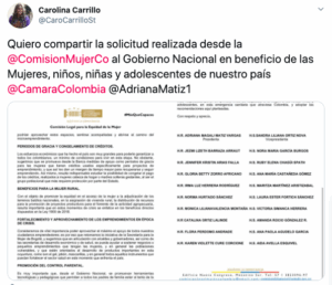 Quiero compartir la solicitud realizada desde la @ComisionmujerCo al Gobierno Nacional en beneficio de las Mujeres, niños, niñas y adolescentes de nuestro país 30/03/2020 Leer más »