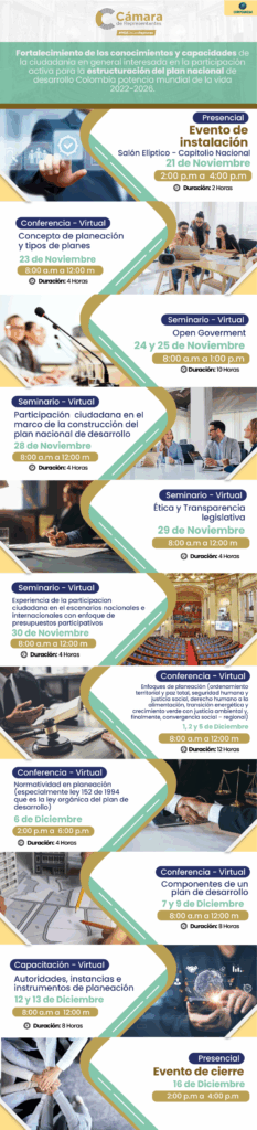 Fortalecimiento de los conocimientos y capacidades de la ciudadanía en general interesada en la participación activa para la estructuración del plan Nacional de desarrollo Colombia potencia Mundial de la vida 2022-2026. Link de Inscripción https://docs.google.com/forms/d/e/1FAIpQLSebtyE2N-DdW1McS5qumwJFhsWb4Mn…