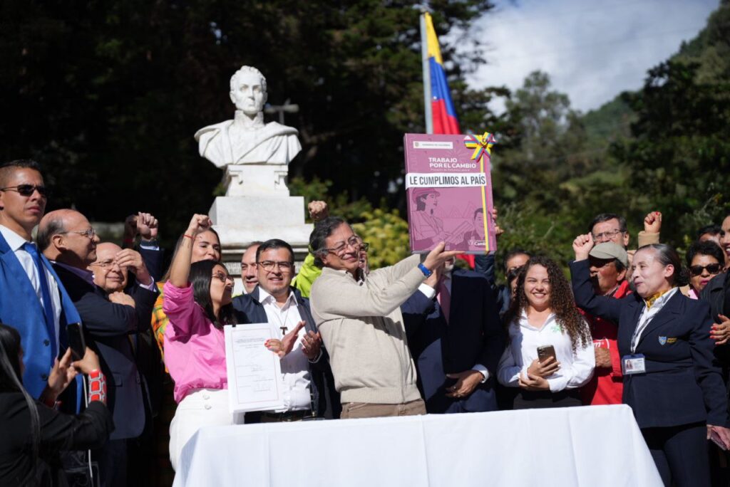 En medio de un acto multitudinario en la casa museo de Simón Bolívar, en Bogotá, fue sancionada por parte del presidente, Gustavo Petro la reforma laboral. Bogotá, 26 de junio de 2025 (Prensa Cámara). Luego de surtir su trámite en el Congreso de la República, entrará en vigencia la reforma laboral, la cual significa un gran paso en la restitución de derechos de los trabajadores en Colombia. Puntos clave como el cambio en el horario nocturno, el aumento de recargos por trabajo dominical, mejoras en las condiciones laborales de los trabajadores de aplicaciones digitales y el contrato de aprendizaje para los practicantes del SENA fueron algunas de las conquistas dentro de este proyecto. En medio del acto, el presidente de la Cámara, Jaime Raúl Salamanca, resaltó el papel de la corporación en la discusión, votación y aprobación no solo de la reforma laboral, sino también de la reforma a la salud y otros proyectos de gran impacto para el país. “Creo que hemos dado ejemplo de que es posible trabajar en un marco de separación de poderes, de manera armónica con el Gobierno”. Además, agradeció a los congresistas que, entre las diferencias políticas, aprobaron este proyecto: “Hemos entendido todos que desde la diferencia se puede construir y que, por encima de los intereses de los partidos, está primero el pueblo colombiano”. Cerró su discurso frente al presidente Gustavo Petro, manifestando su compromiso y apoyo a la reforma pensional, que por orden de la Corte Constitucional tendrá que regresar a la plenaria de la Cámara de Representantes para subsanar un vicio de trámite. De esta forma, solo quedará un periodo de seis meses para que las empresas del país pongan en práctica la nueva normativa que regirá en temas laborales. Fuente: Luis Miguel Moyano, Periodista - Oficina de Información y Prensa Cámara de Representantes.