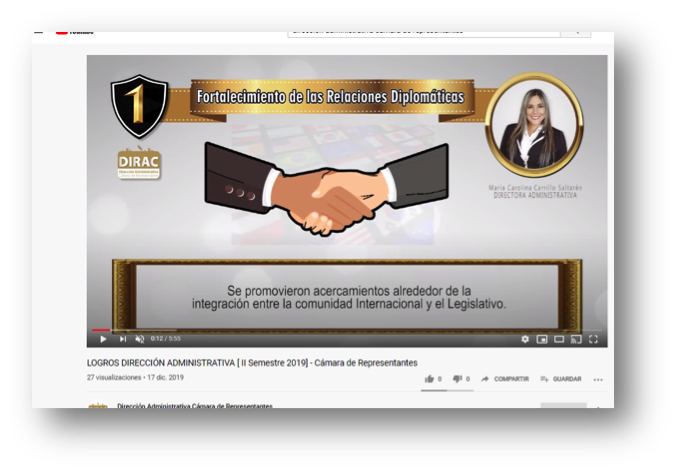- Tercer por la mejor Rendición de Cuentas: El Departamento Administrativo de la Función Pública reconoció a la Cámara de Representantes otorgándole el tercer lugar por la mejor rendición de cuentas en la categoría “entidades de otras ramas del poder público”, entre muchas otras instituciones el país.