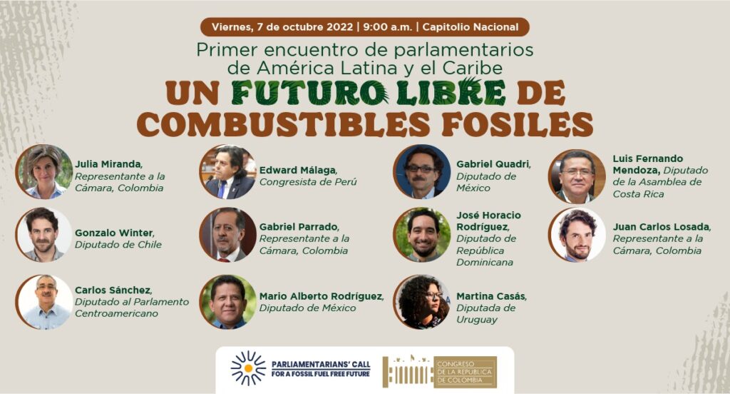 Parlamentarios de América Latina y el Caribe se reúnen el próximo 7 de octubre en Bogotá para firmar la declaratoria “Por un futuro libre de combustibles fósiles”