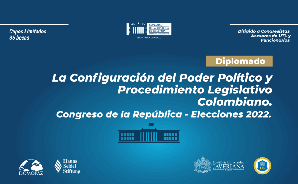 La Secretaría General de la Cámara de Representantes, la Fundaciones Hanns Seidel y la Fundación Domopaz en convenio con la Pontificia Universidad Javeriana, se complacen en anunciar la apertura de la convocatoria de becas 2021 para el diplomado en formación legislativa: "La Configuración del poder político y el procedimiento legislativo colombiano - Elecciones 2022", el cual proporcionará herramientas de actualización teórico prácticas para mejorar habilidades y conocimientos en el trabajo legislativo en el Congreso de la República y el nuevo código electoral Colombiano con miras a las elecciones Congreso de la República 2022 .