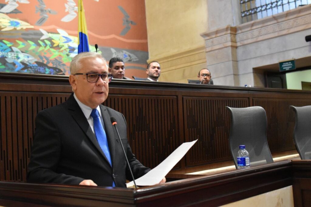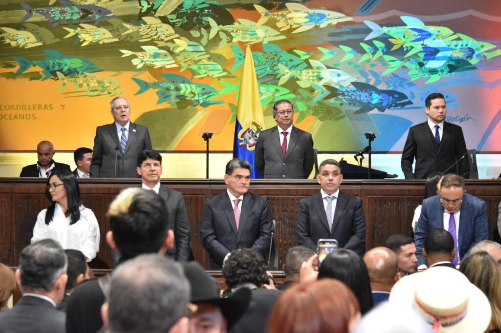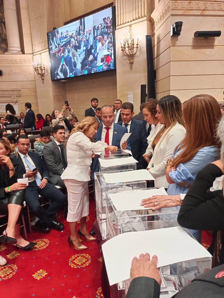En el auditorio Luis Guillermo Vélez del edificio nuevo del Congreso, la Cámara de Representantes rindió cuentas sobre su gestión en el año legislativo 2023 – 2024, por parte de la mesa directiva encabezada por el presidente H.R Andrés Calle Aguas, Vicepresidentes, Fernando Niño Mendoza y Juan Espinal, la Secretaria General a cargo del Dr. Jaime Luis Lacouture Peñaloza y Dirección Administrativa, por el Dr. John Abiud Ramírez Barrientos. Al evento asistieron la ministra de Justicia, Ángela María Buitrago, delegados de la Contraloría, Procuraduría, Auditoría, Representantes a la Cámara, funcionarios, contratistas y medios de comunicación, quienes escucharon los informes de cada uno de los encargados de exponer el trabajo legislativo y administrativo que se ejecutó en la vigencia establecida.