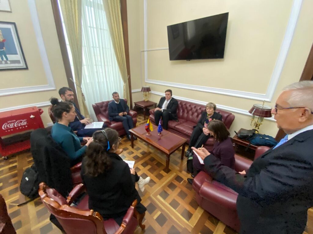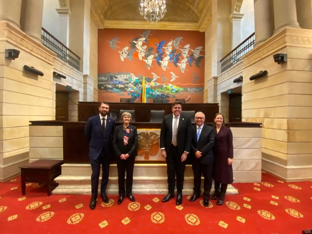9 de mayo de 2024  En un acto especial, donde las relaciones internacionales se entrelazan con la política, la economía y educación, se realizo la  visita del Presidente de la Cámara de la Mancomunidad de Australia,  el señor Milton Dick, su excelencia Anna Chrisp embajadora de Australia en Colombia, la señora Claressa Surtees secretaria de la Cámara de Australia, al despacho del presidente de la Cámara de Colombia Andrés David Calle y demás miembros de ella mesa directiva y grupo de amistad.   En el  encuentro diplomático y parlamentario, se escucharon las diferentes propuestas para mejorar las relaciones internacionales entre las dos naciones, especialmente en temas de turismo y sector educativo e intercambio comercial.