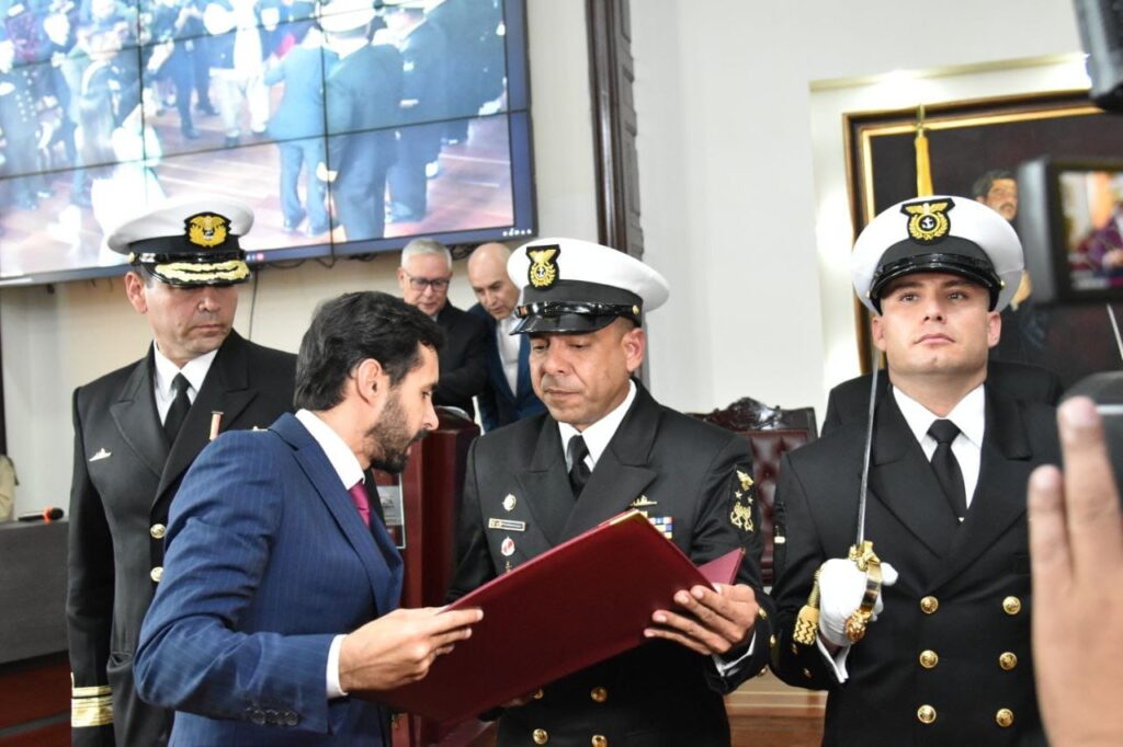 29 de mayo 2024  En el salón Luis Carlos Galán Sarmiento, se cumplió el acto de condecoración con la Orden de la Democracia Simón Bolívar en el grado Cruz Comendador, a la Escuela Naval De Suboficiales ARC Barranquilla, entidad que recibió el homenaje por parte del Honorable Representante, Dr. José Jaime Uscátegui Pastrana.  En el acto se exaltaron  los 90 años de la Escuela, por su labor incansable en la formación de grumetes para la armada nacional, lo cual ha fortalecido las capacidades navales del país, demostrando un compromiso continuo con la excelencia educativa y la defensa nacional.