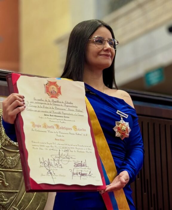 El miercoles 26 noviembre del 2025. En el salón Boyacá del capitolio nacional de la República, el Honorable Representante a la Cámara, Dr. Carlos Felipe Quintero Ovalle, otorgo la Condecoración Orden de la Democracia “SIMÓN BOLÍVAR”, a la gestora cultural y escritora colombiana Julieth Marcela Peraza Torres, en el grado “Cruz Caballero”, como homenaje a una vida dedicada a la gestión cultural, la promoción del folclor y la preservación de la identidad vallenata, destacándose por su liderazgo, sensibilidad artística y compromiso con la memoria colectiva del Caribe colombiano, siendo ejemplo de dedicación, creatividad y profunda vocación de servicio a la cultura y la comunidad.