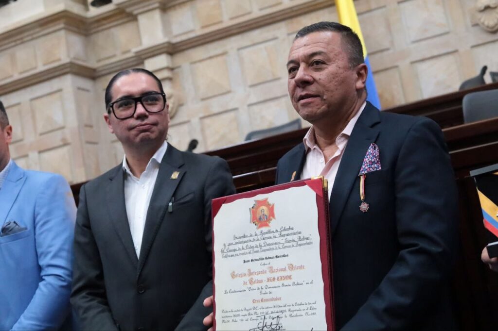 El 9 de diciembre del 2025. En el Salón Boyacá del Congreso de la República, el primer Vicepresidente de la Honorable Cámara de Representantes Dr. Juan Sebastián Gómez otorgó la condecoración, Orden de la Democracia Simón Bolívar, en el grado “Cruz Comendador” al Colegio Integrado Nacional Oriente de Caldas IES CINOC.