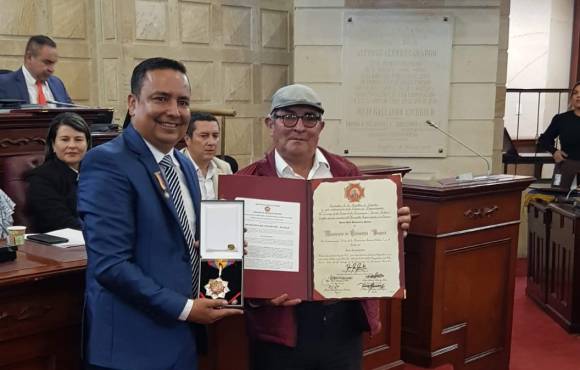 Con la Orden de la democracia Simón Bolívar en el grado “Cruz Oficial” el Honorable Representante Juan Diego Muñoz, condecoró al señor Elquin Zapata, reconocido por sus aportes en el territorio colombiano.