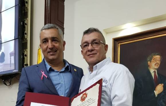 Con la Orden de la democracia Simón Bolívar en el grado “Cruz Oficial” el Honorable Representante Juan Diego Muñoz, condecoró al señor Julio César Rivera, reconocido por sus aportes en el territorio colombiano.
