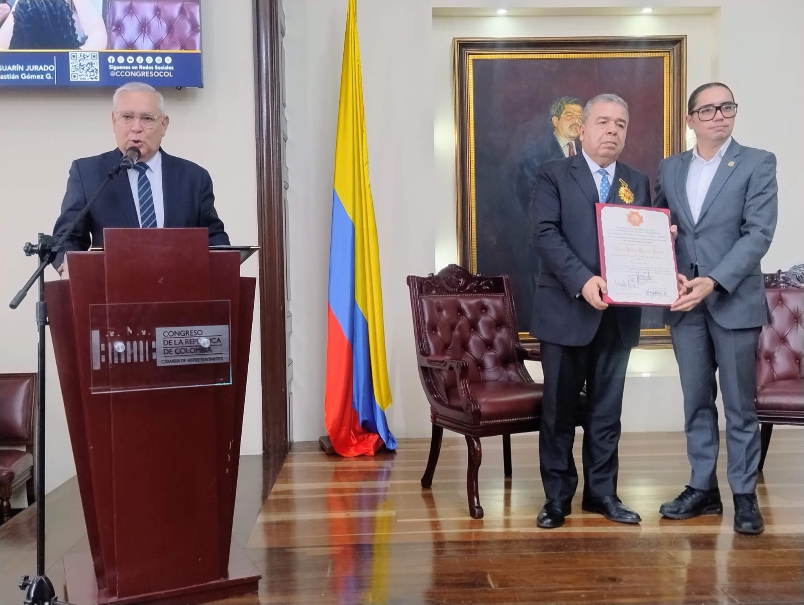 el 1 de octubre del 2025. En el Salón Luis Carlos Galán del Congreso de la República, el primer vicepresidente de la Honorable Cámara de Representantes, Dr. Juan Sebastián Gómez, hizo entrega de la Orden de la Democracia “Simón Bolívar” en el grado “Gran Cruz Oficial” al Honorable Magistrado de la Corte Suprema de Justicia, Dr. Carlos Arturo Guarín Jurado.