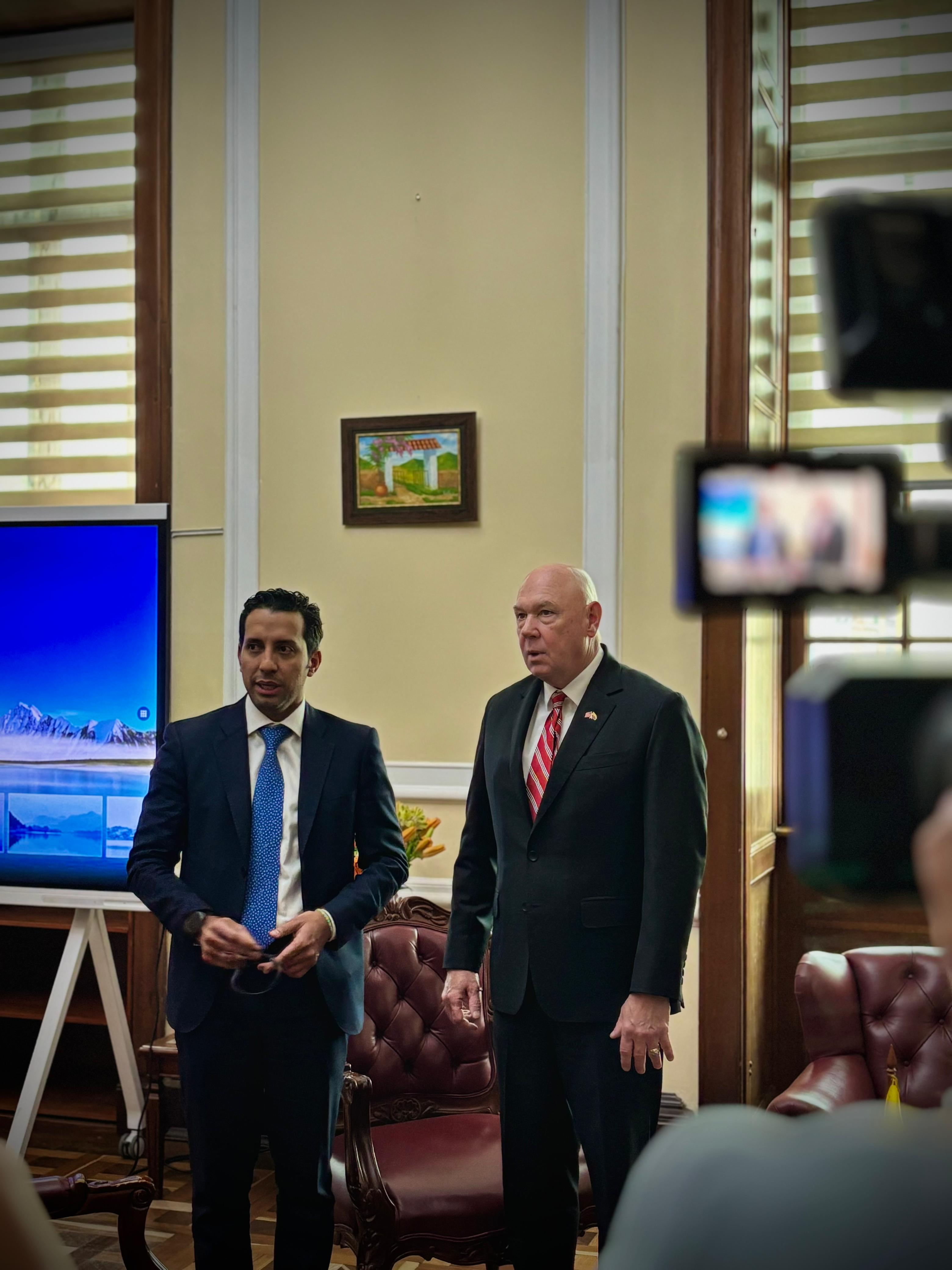 El 17 de septiembre del 2025. En la sala de juntas de la Presidencia de la Cámara de Representantes, el Honorable Presidente de la Cámara, Dr. Julián David López Tenorio, recibió al Excelentísimo Sr. Embajador de los Estados Unidos, Dr. John McNamara, en el marco de una visita oficial.