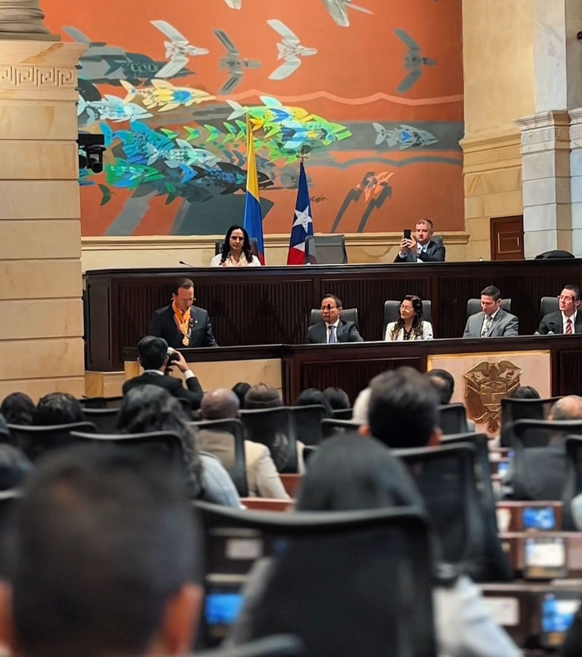 El lunes 22 septiembre. En el Salón Boyacá del Congreso de la República, el Honorable Secretario General de la Cámara de Representantes, Dr. Jaime Luis Lacouture Peñaloza, entregó la Orden de la Democracia “Simón Bolívar” en el grado Cruz Oficial al abogado colombiano Iván Alfonso Cancino.