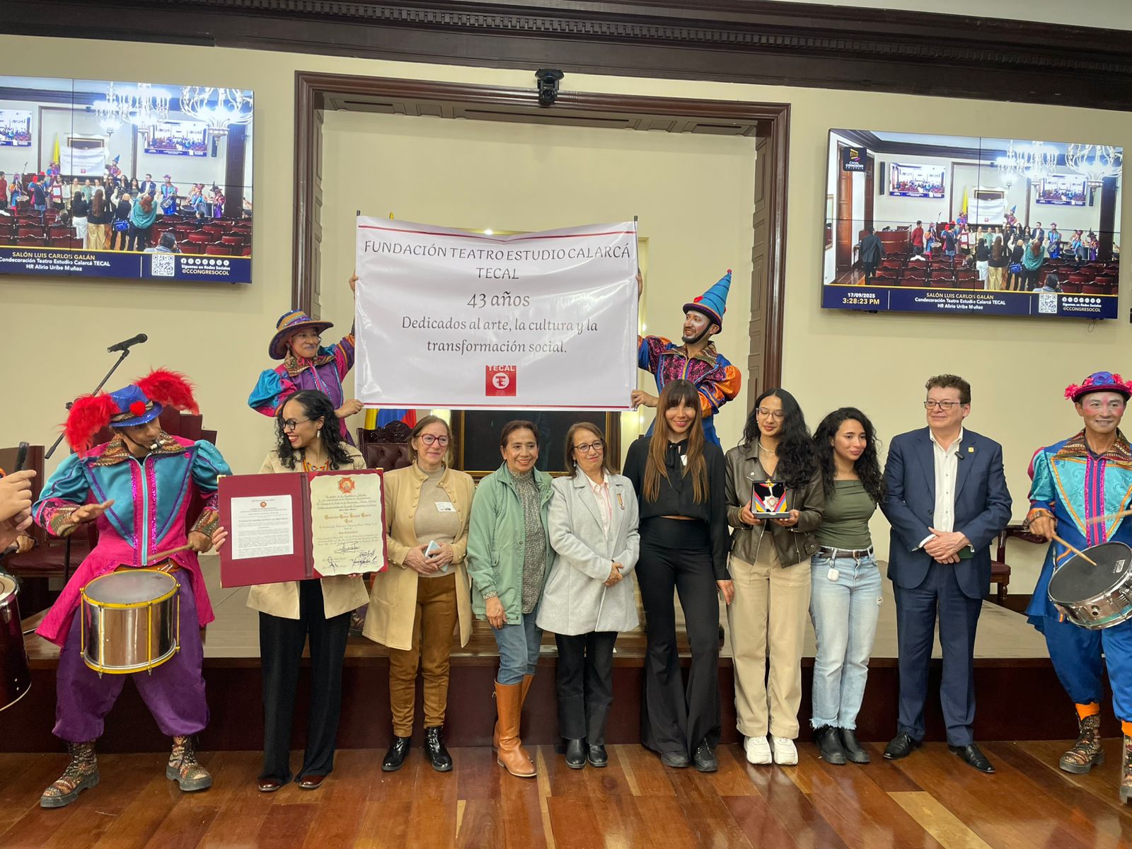 El 17 de septiembre 2025. En el salón Luis Carlos Galán del Capitolio Nacional, se llevó a cabo por parte del Honorable Representante a la Cámara Alirio Uribe Muñoz, la Condecoración Orden de la Democracia “SIMÓN BOLÍVAR”, a la Fundación Teatro Estudio Calarcá Tecal, en el grado Cruz Comendador, como homenaje a una vida institucional dedicada al arte, la cultura y la transformación social. Su liderazgo durante más de cuatro décadas en la creación teatral, la formación artística y el trabajo comunitario ha sido testimonio de creatividad, compromiso y profunda vocación de servicio cultural y ciudadano.
